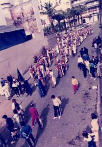 En 1968 se produjo otro hecho significativo con la creación de la primera cuadrilla de hermanos costaleros, formada por estudiantes del Colegio San Agustín, que decidieron portar sobre sus hombros el paso del Señor.